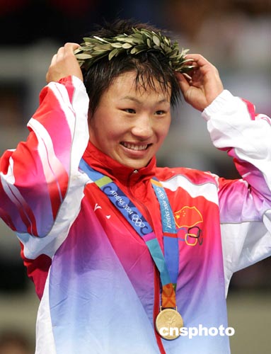 十九歲小將王旭在女子摔跤七十二公斤級決賽中戰(zhàn)勝俄羅斯選手瑪尼奧羅娃,勇奪冠軍。這是中國選手在首次成為奧運會正式項目的女子摔跤比賽中奪得的第一枚金牌。決賽中,馬妮奧洛娃先得一分,但王旭表現(xiàn)沉著冷靜,很快追平比分,并擴大戰(zhàn)果,最終將總比分定格在七比二,奪得了金牌。世界冠軍日本名將濱口京子在半決賽中被王旭以三分優(yōu)勢擠出冠亞軍爭奪戰(zhàn),只獲得銅牌。