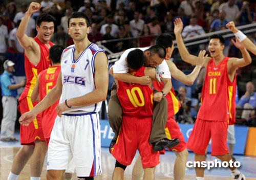 當(dāng)?shù)貢r(shí)間二十三日下午,在雅典赫利尼科體育中心籃球館里發(fā)生了一件大事:中國男籃戰(zhàn)勝塞黑隊(duì)躋身第二十八屆奧運(yùn)會八強(qiáng)行列!