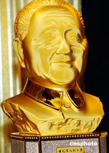 為紀(jì)念世紀(jì)偉人、中國(guó)改革開(kāi)放的總設(shè)計(jì)師鄧小平先生百年誕辰,“金至尊”特別動(dòng)員三十多人精心鑄造“鄧小平金至尊美鉆金像”,八月二十四日在香港舉行揭幕儀式,該像以2.8公斤黃金,5000顆總重量達(dá)100卡拉鉆石鑄造而成,總價(jià)值超過(guò)港幣一百萬(wàn)。作者:錢興強(qiáng)