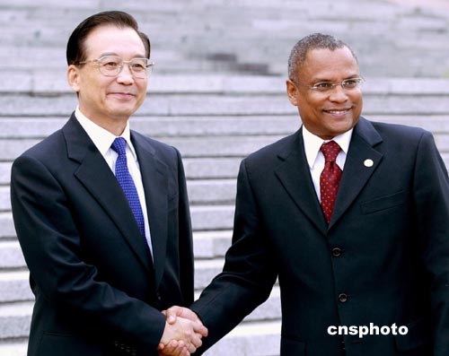 中新社北京八月二十四日電 (記者 朱大強(qiáng))中國國務(wù)院總理溫家寶今天在人民大會堂與佛得角總理內(nèi)韋斯舉行會談,雙方一致表示愿共同努力,推動(dòng)兩國關(guān)系全面發(fā)展。
