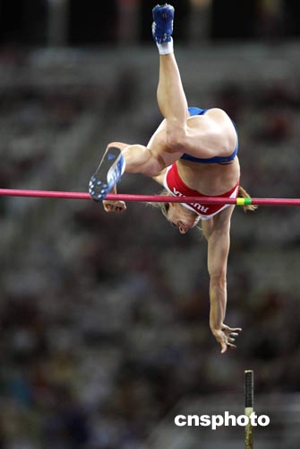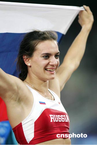 在全場觀眾的歡呼聲中,俄羅斯女將伊辛巴耶娃今晚在雅典奧運(yùn)會田徑賽場神奇般地越過四米九一,不僅將奧運(yùn)會女子撐桿跳金牌歸于名下,并且創(chuàng)造了田徑賽事開賽以來首項世界紀(jì)錄。