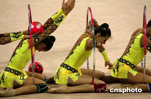 意大利藝術體操隊24日參加雅典奧運會賽前訓練。中新社記者:王瑤