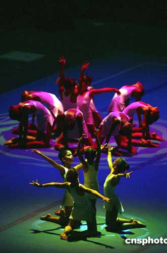圖為當(dāng)?shù)貢r(shí)間24日,在雅典體操展覽館里孩子們的精彩表演。