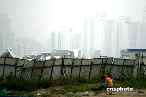 中新社北京八月二十七日電 今日十五時十分左右,北京市朝陽區(qū)洼里鄉(xiāng)地區(qū)出現(xiàn)突發(fā)強(qiáng)對流天氣,形成強(qiáng)烈局地旋風(fēng),將國家游泳中心工地三幢暫設(shè)(臨時設(shè)施)卷起并摧毀,造成四十三人受傷,其中兩人重傷。