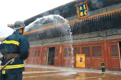 據(jù)市消防局宣傳處介紹,這次演習的主要目的是為確保國慶游園活動的消防安全。同時,由于這次是在古建筑內(nèi)演習,內(nèi)部道路狹窄,演習部隊會把保護古建筑的安全放在第一位。