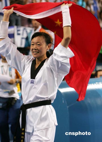 晚上七點(diǎn)三十分,第一次參加奧運(yùn)會(huì)的北京跆拳道選手羅微不畏強(qiáng)手,以八比六挫敗東道主選手伊·米斯塔基杜,繼陳中在悉尼奪冠后為中國(guó)跆拳道隊(duì)贏得了第二枚寶貴的奧運(yùn)金牌。