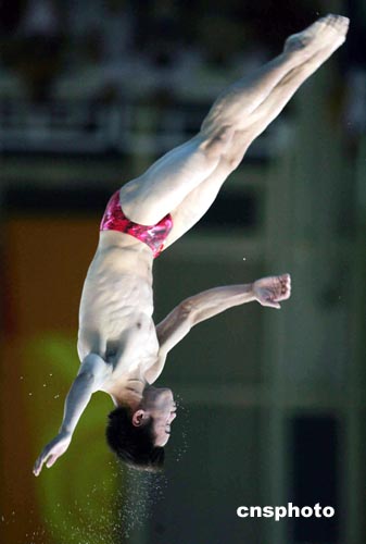 當(dāng)?shù)貢r間8月28日晚,在雅典奧運(yùn)會跳水最后一項(xiàng)比賽--10米跳臺決賽中,中國名將胡佳奪得冠軍。中新社記者:任晨鳴