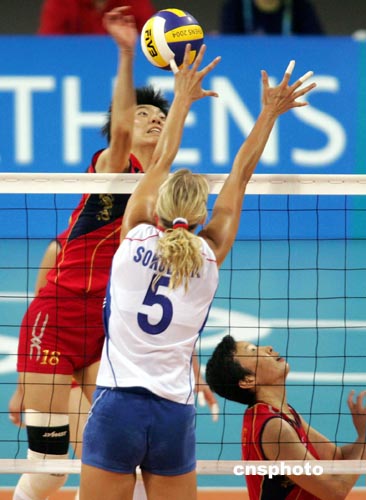 當(dāng)?shù)貢r間八月二十八晚,中國女排在雅典奧運(yùn)會女排決賽中先失兩局的情況下,連扳三局,最終以三比二戰(zhàn)勝俄羅斯隊(duì)而獲得冠軍。中新社記者:毛建軍