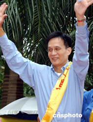 2004香港立法會(huì)選舉在即,香港民建聯(lián)港島區(qū)周日舉行誓師大會(huì),眾多參加誓師大會(huì)的民建聯(lián)成員冒雨為參選候選人打氣。作者:錢(qián)興強(qiáng)