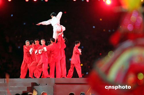 當(dāng)?shù)貢r間八月二十九日,第二十八屆奧林匹克運(yùn)動會在雅典圓滿結(jié)束。圖為中國演員在閉幕式上表演節(jié)目。中新社記者:毛建軍