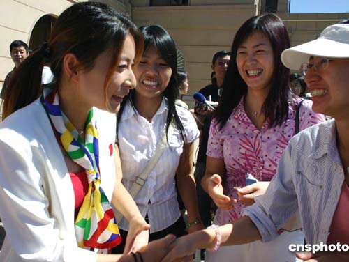 8月31日,中國奧運健兒載譽回京,在北京首都國際機場受到英雄般的歡迎。圖為雅典奧運會包攬兩項跳水冠軍的郭晶晶受到熱烈歡迎。作者:韓藝冰