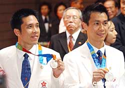 為歡迎香港奧運(yùn)代表,香港政府特別于8月31日在尖沙嘴文化中心舉行正式的歡迎儀式。現(xiàn)場一早有數(shù)百名市民等候,熱烈歡迎奧運(yùn)代表及榮獲奧運(yùn)乒乓球男子雙打銀牌得主高禮澤、李靜。作者:洪少葵
