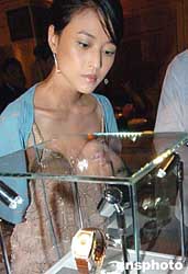 香港影星周海湄在發(fā)布會上觀看瑞士新款名表系列展示。 作者:錢興強