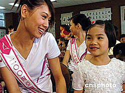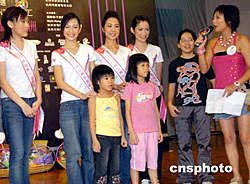 參加2004亞洲小姐競(jìng)選的香港十二位佳麗,九月四日來(lái)到香港保良局以關(guān)懷社會(huì)、宣揚(yáng)愛(ài)心為題親善探訪入住兒童宿舍的一班小朋友。作者:錢(qián)興強(qiáng)