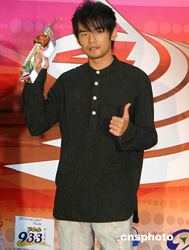 臺灣歌手周杰倫為“最受歡迎男歌手”、“最受歡迎創(chuàng)作歌手”和“地區(qū)杰出藝人”,其專輯《葉惠美》為“最佳專輯”,歌曲《晴天》為年度最受歡迎二十大金曲。中新社記者:黃少華