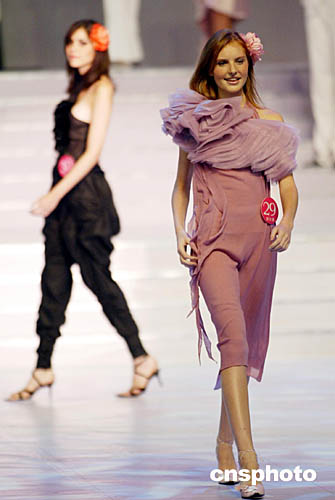 9月5日晚,“時尚杭州之旅·2004年新絲路世界模特大賽”在浙江省人民大會堂舉行,來自二十八個國家的四十七名選手將參加小禮服、泳裝、晚裝展示、情景劇表演以及系列專業(yè)技能展示的比賽。中新社記者:盛佳鵬
