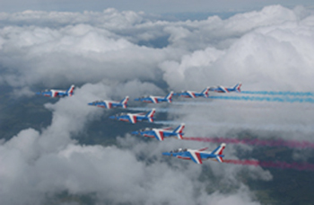 每年7月14日法國國慶日的巴黎上空、著名的勒芒24小時(shí)汽車大將賽、法國網(wǎng)球公開賽和一級方程式賽車場的上空,都能看到法蘭西巡邏兵8機(jī)編隊(duì)拉出的紅白藍(lán)三色煙跡。它幾乎已經(jīng)成了法國重大場合不可缺少的儀仗隊(duì),是法國的空中親善大使。