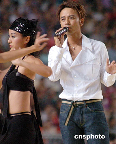為歡迎國家奧運金牌代表團(tuán)訪港,九月七日香港舉行“金牌精英大匯演”,香港歌星李克勤在“金牌精英大匯演”上演唱。中新社記者:錢興強(qiáng)