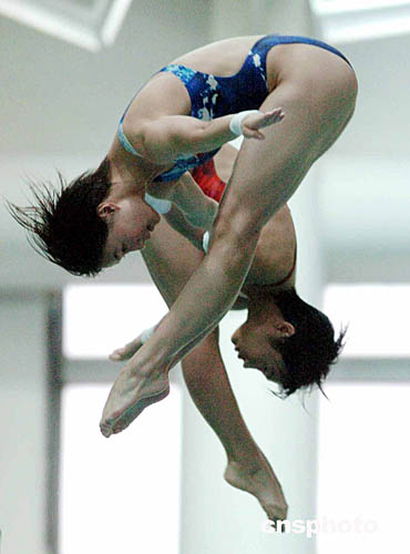 田亮、胡佳、勞麗詩(shī)、李婷、楊景輝的十米高臺(tái)跳水,也讓觀(guān)眾大飽眼福。觀(guān)眾席上的青少年不斷高喊他們喜歡的運(yùn)動(dòng)員名字,令整個(gè)表演氣氛更顯熱鬧。最后進(jìn)行的雙人三米板和十米高臺(tái)表演,田亮、楊景輝和勞麗詩(shī)、李婷的出色表演,把整個(gè)氣氛推向高潮。