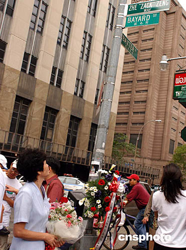 當(dāng)?shù)貢r間九月十一日,紐約華埠舉行曾喆路命名儀式,紀(jì)念“九一一”華裔英雄曾喆,這是“九一一”后紐約首個以亞裔“九一一”英雄名字命名的街道。曾喆不在世貿(mào)大樓工作,他是在自發(fā)前往“九一一”現(xiàn)場救護(hù)他人時犧牲的。
