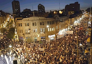 中新網(wǎng)9月13日電 據(jù)以色列《耶路撒冷郵報》報道,當?shù)貢r間9月12日晚,數(shù)萬名以色列人先后涌上首都耶路撒冷的街頭,舉行了一場聲勢浩大的示威活動,對以色列總理沙龍?zhí)岢龅拿髂昴甑浊皬募由车貛С奋娪媱澨岢鰪娏铱棺h。