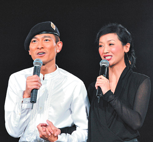 說到請(qǐng)“小倩”做嘉賓,“華仔”表示因之前收到不少歌迷的電郵,表示很想見到“小倩”在其演唱會(huì)上亮相;而“小倩”也十分幫忙,收到邀請(qǐng)電話后力馬來港。“華仔”道:“你剛出場(chǎng)時(shí),大家都認(rèn)不得你,因?yàn)槟愀郧耙荒R粯樱孟駴]有老過一樣,大家以為你是假的!哈哈!彼寡允窒M倥c“小倩”合作,前晚談起劇本時(shí)又想到她,“小倩”開心的表示會(huì)等他邀請(qǐng),“華仔”笑說待明年開部電影《華倩之戀》。