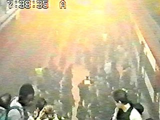 爆炸情景被安裝在阿托查火車站大樓頂部的監(jiān)視攝像機(jī)全程錄了下來。顯然,爆炸發(fā)生后,立即引起了乘客的恐慌,乘客們紛紛跑向自動(dòng)梯的上層。
