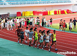 九月中旬,參加全國農(nóng)民運動會開幕式的演員分期分批在體育場排練。全國農(nóng)民運動會十月中旬將在江西省宜春市舉行據(jù)當(dāng)?shù)卣榻B,此次農(nóng)運會的最大亮點將是一萬五千多人參演的大型文體表演《田野大風(fēng)頌》開幕式。中新社記者:王麗南