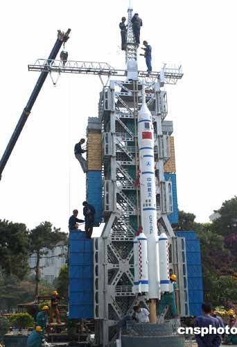 九月十六日,北京市園林局與北京城建集團(tuán)職工忙著為國慶五十五周年天安門廣場花壇布景。今年花壇總體格局以“萬眾一心”主花壇為主,東側(cè)畫卷式花壇由綴花日晷、神舟五號(hào)發(fā)射塔和高科技符號(hào)等組成,西側(cè)以延安寶塔為主景,母親河黃河將太行山、延安寶塔、壺口瀑布等貫穿于一體。中新社記者:鄒憲