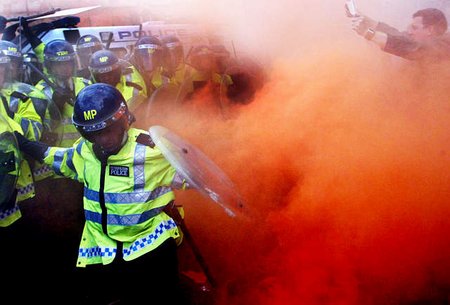 中新網(wǎng)9月16日電 據(jù)路透社報道,2004年9月15日,一些喜歡獵狐的示威者在倫敦議會廳門外與警察發(fā)生沖突。本周三,英國議會通過投票表決禁止獵狐,盡管政客們?yōu)榇藸幷摬恍菀约懊癖姳硎緩娏铱棺h,這一禁令的獲得通過意味著在英國延襲了數(shù)百年的獵狐活動將會被視為非法。(固山)