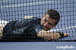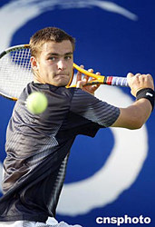 九月十八日,在北京網球中心中央球場進行的ATP男子單打半決賽中,俄羅斯選手尤茲尼以二比零戰(zhàn)勝泰國網球名將斯里查潘晉級決賽。中新社記者:盛佳鵬