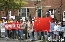 美東華人當(dāng)?shù)貢r(shí)間九月十八日在華盛頓集會(huì)示威,抗議日本不正視侵華戰(zhàn)爭(zhēng)罪行。作者:余東暉