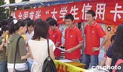 中新社北京九月二十日電(鄧敏)首張為高校學(xué)子量身定制的“大學(xué)生信用卡”今天亮相北京,目前已有北京大學(xué)部分學(xué)生開始申辦這種僅面向在校大學(xué)生的信用卡。