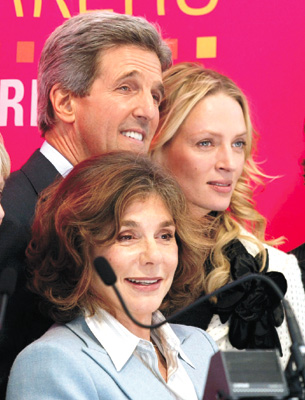 前天她出席紐約一個(gè)名為第七屆全年“RedbookMothersandShakers”大獎(jiǎng),接受大會(huì)頒贈(zèng)的獎(jiǎng)項(xiàng)。同一場(chǎng)合,與美國(guó)總統(tǒng)布什競(jìng)逐下任美國(guó)總統(tǒng)大選的克里也有出席,還與這位巨星一同合照。