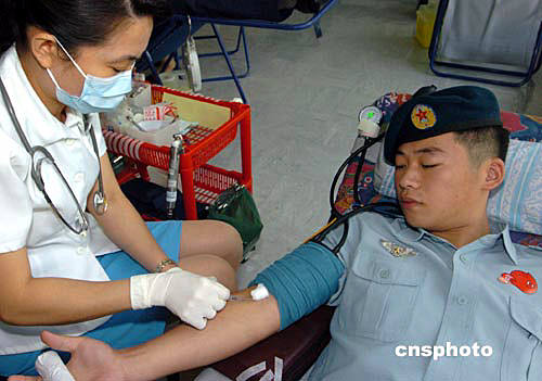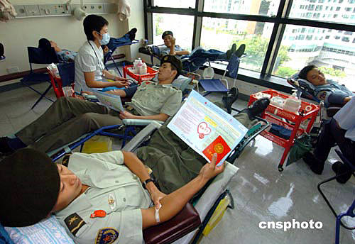 駐港部隊戰(zhàn)士接受抽血 獻血現(xiàn)場場面壯觀 版權(quán)聲明:凡標注有”cnsphoto“字樣的圖片版權(quán)均屬中國新聞網(wǎng),未經(jīng)書面授權(quán),不得轉(zhuǎn)載使用。 |