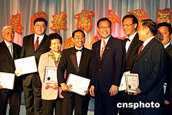 當?shù)貢r間九月二十三日,由美國華人企業(yè)家和著名華商團體領袖發(fā)起成立的美國華商會在紐約舉行職員就職典禮,中國駐紐約總領事劉碧偉(左五)向商會會長、秘書長、理事等三十多人頒發(fā)了就職證書。作者:趙海燕
