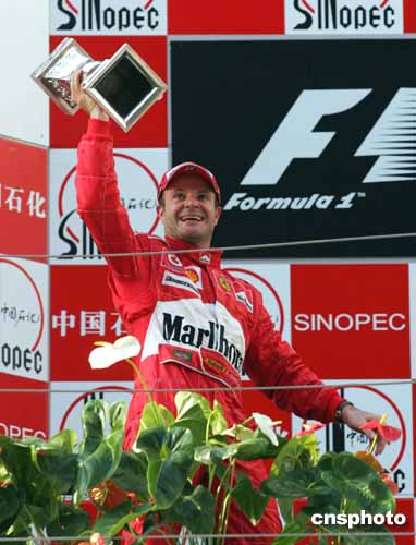中新社上海九月二十六日電(記者 孫璐 陳靜)今天下午兩點(diǎn)在上海舉行的首個(gè)F1中國大獎(jiǎng)賽中,來自法拉利車隊(duì)的車手巴利切羅獲得冠軍,英美本田車隊(duì)的巴頓和邁凱倫車隊(duì)的雷克南分獲二、三名。