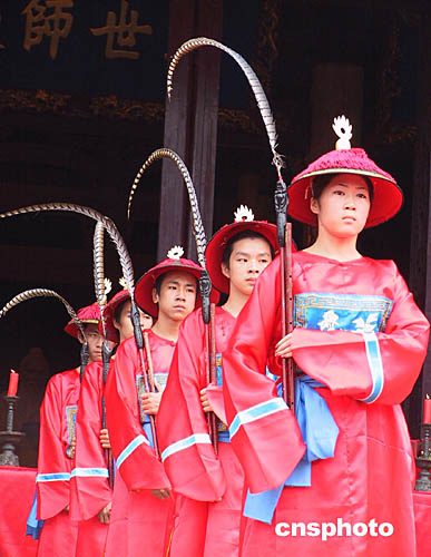 九月二十八日,福州舉行紀(jì)念孔子誕辰2555周年祭祀活動(dòng)?鬃雍笠岽怼⒖讓W(xué)專(zhuān)家以及福州市社會(huì)各界代表共一千多人參加紀(jì)念活動(dòng)。作者:王東明