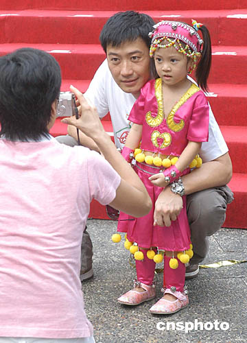 歌星黎明9月28日在香港出席「公益金便服日」突破紀(jì)錄儀式,與為活動(dòng)擔(dān)任表演的小朋友合照。