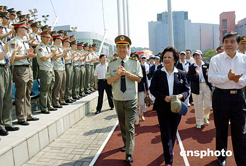 香港特首夫人董趙洪娉率各界人士于9月28日中秋節(jié)探訪中國人民解放軍駐港部隊,與外交部駐港特派員楊文昌、駐軍政委劉良凱等陪同下步入會場,受到熱烈歡迎。