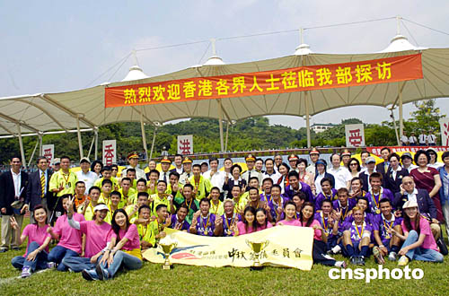 香港特首夫人董趙洪娉率各界人士于9月28日中秋節(jié)探訪中國人民解放軍駐港部隊,在昂船洲軍營與駐軍足球隊、香港明星足球隊賽后合影留念。