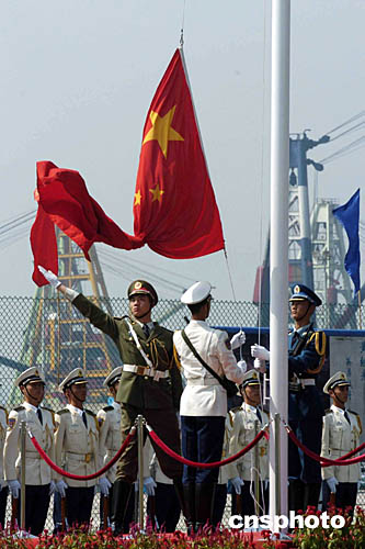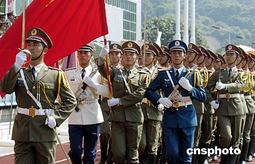 圖為駐軍三軍儀仗隊舉行升旗儀式。
