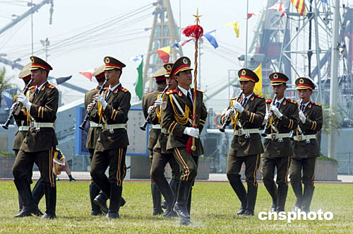 圖為駐軍三軍儀仗隊威武步操入場。