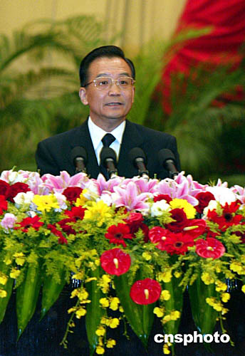 溫家寶總理在招待會(huì)上講話。他說(shuō),中國(guó)人民五十五年艱苦奮斗的光輝歷程,使我們從中得出一個(gè)最重要、最基本的結(jié)論,這就是:必須在中國(guó)共產(chǎn)黨的堅(jiān)強(qiáng)領(lǐng)導(dǎo)下,立足中國(guó)國(guó)情,順應(yīng)世界潮流,獨(dú)立自主地走中國(guó)特色的社會(huì)主義道路。