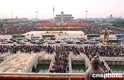 國慶日:大風吹出碧天白云 天安門前人肩勝花海
