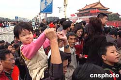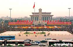 十月二日的國慶節(jié)假日,天安門廣場向北京市民來賓開放,數(shù)十萬游人,紛至沓來,從各個通道擁進廣場觀光,形成節(jié)日人山人海的景觀。作者:鄒憲