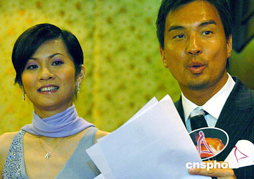 香港藝員黃子雄、饒佩君主持亞洲小姐發(fā)布會。