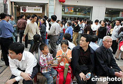 十月月七日是中國“國慶七天長假”的最后一天,北京王府井商業(yè)街人山人海,各家店鋪人滿為患。據(jù)有關部門統(tǒng)計,雖然今年“黃金周”北京市的商業(yè)銷售額略低于往年,但還是令商家滿意。中新社記者:任晨鳴