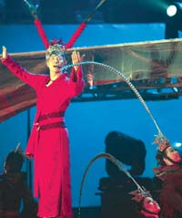 換上大紅戲袍,頭戴雉翎的劉德華騎著由人扮成的馬唱完《中國人》后,京劇的鑼鼓聲響了起來。劉德華同一班伴舞在臺上邁起了方步,玩了幾個(gè)京劇武打動(dòng)作,在場的歌迷愣了神。隨后,《笨小孩》的旋律響了起來,部分回過神的歌迷撲哧一聲笑了出來。在演唱間隙,劉德華又加上了幾句莫名其妙的京劇道白。唱過大戲后,劉德華頗有自知之明地摸著兩根翎子說:“沒想到大家都不喜歡這個(gè),難道這個(gè)不可愛嗎?”在沒得到回應(yīng),劉德華急忙補(bǔ)充道:翎子當(dāng)然不如自己可愛。