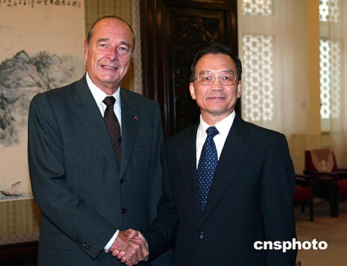 組圖:溫家寶會(huì)見法國總統(tǒng)希拉克